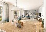 Wohnzimmer und Essbereich sind miteinander verbunden und die geräumige Küche wird schnell zum beliebten Familientreffpunkt. Bei Bedarf, zum Beispiel für das Büro zu Hause, kann im Erdgeschoss noch ein weiteres Zimmer eingeplant werden. Das "Flair 110" ist großzügig gestaltet, sowohl im Schlaf-, Kinder- und Gästezimmer, als auch im Bad. Dieses Familienhaus überzeugt mit seinem Charme.