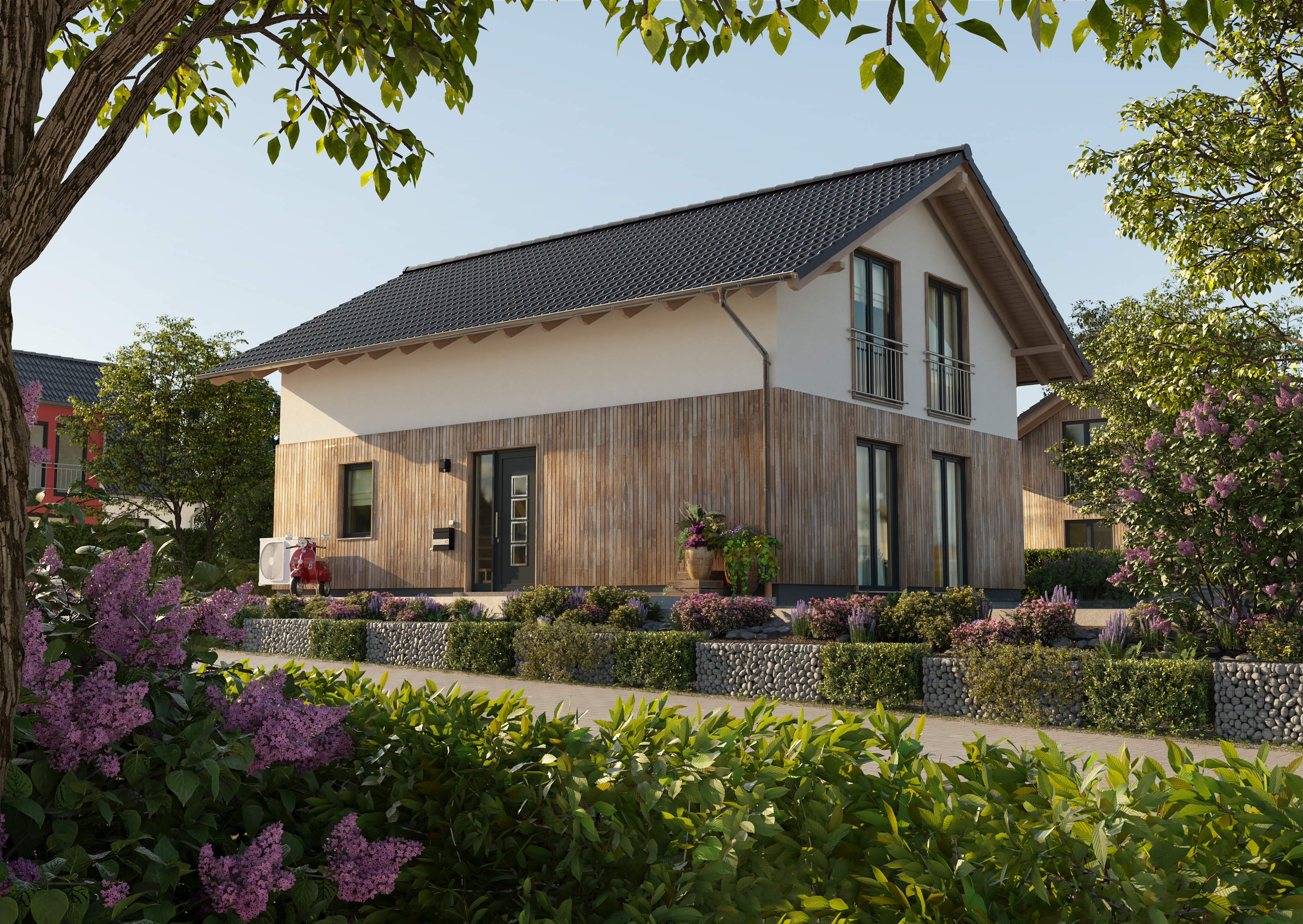 Im Preis inbegriffen sind die Solarpaneele auf dem Dach, ein Gas-Brennwert-Solar-Kompaktgerät, Badheizkörper, Fußbodenheizung, die Frischluftautomatik oder die Lüftungsanlage Lunos e² sowie das Elektropaket, das elektrische Leitungen und Steckdosen umfasst.