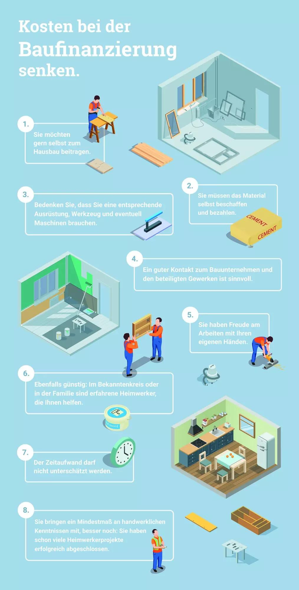 Wichtig ist auch, den Zeitaufwand für Eigenleistungen realistisch einzuschätzen, da dieser oft höher ist als bei professionellen Handwerkern. Zudem bewerten Kreditgeber nur die eingesparten Arbeitskosten als Eigenkapital, nicht jedoch das Material. Trotzdem erkennen sie bis zu 15 Prozent der Eigenleistung als Eigenkapital an.