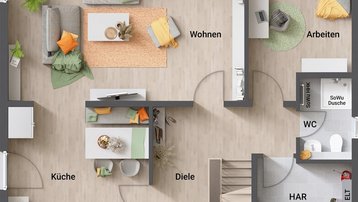 Häufig werden Möbel ganz automatisch direkt an die Wand gestellt, um möglichst viel Platz in der Mitte des Raumes zu schaffen. Praktisch gedacht, doch gerade in größeren Räumen kann das ungemütlich und distanziert wirken. Trauen Sie sich ruhig, mit den Möbeln auf der Fläche etwas zu spielen. Platzieren Sie das Sofa beispielsweise leicht schräg von der Wand abgerückt oder ein Regal als stylischer Raumtrenner.
